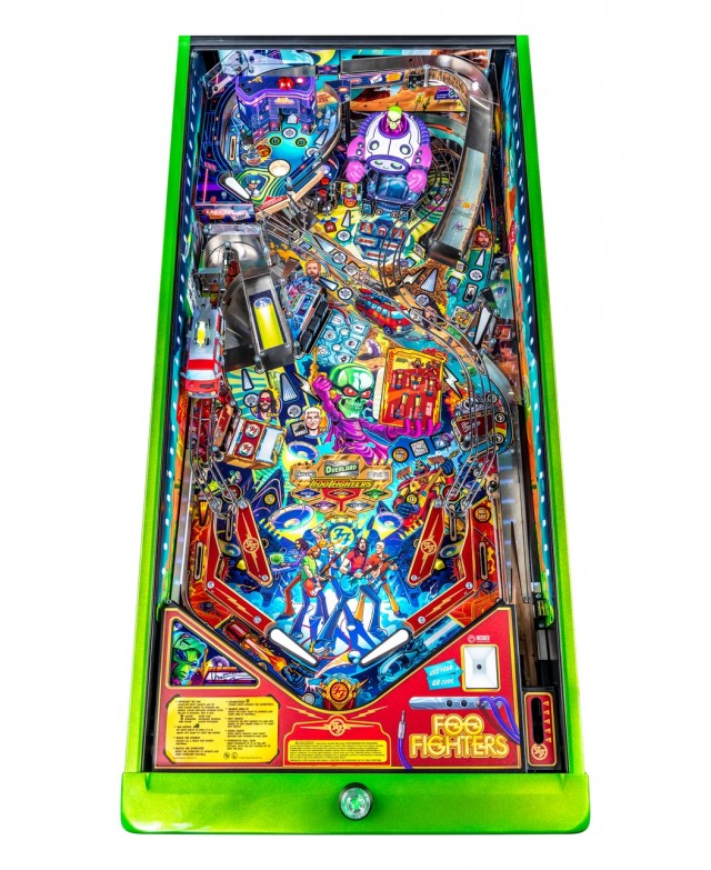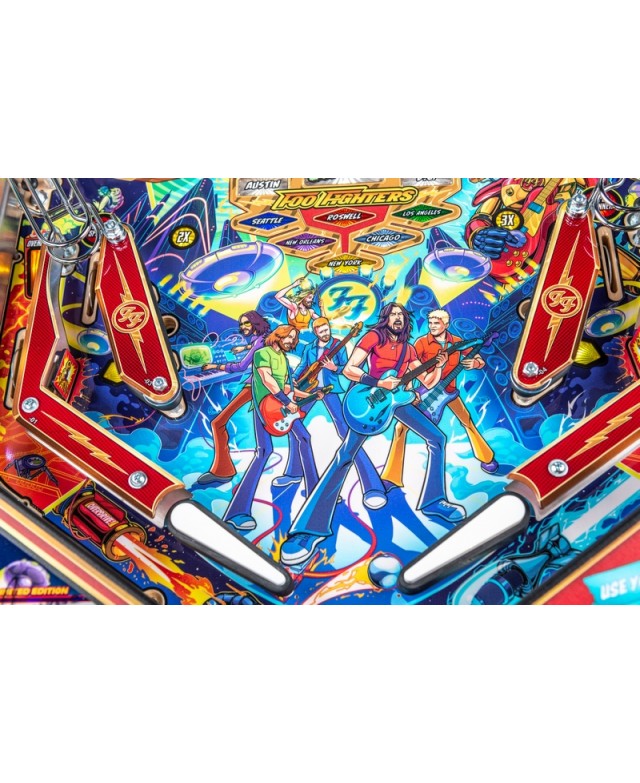 Las diferentes versiones del pinball Foo Fighters de Stern Pinball reviven la experiencia de un concierto de los Foo Fighters, sumergiendo a los jugadores en una aventura épica que incluye 15 canciones emblemáticas del extenso repertorio de la banda, entre ellas: All My Life, Best of You, Breakout, Everlong, Holding Poison, I’ll Stick Around, Learn to Fly, Monkey Wrench, My Hero, Run, Something from Nothing, The Pretender, This is a Call, Times Like These y Walk. Con más de dos años de desarrollo y la colaboración activa de Dave Grohl, Nate Mendel, Pat Smear, Chris Shiflett, Rami Jaffee y el difunto Taylor Hawkins, el pinball de Stern Foo Fighters es una máquina de primer nivel, y mucho más. Se ha creado un universo completamente nuevo, con impresionantes ilustraciones y animaciones personalizadas, entre ellas “Foo Fighters Saturday Morning Action Time”, una serie ficticia que narra la misión de la banda para salvar el rock and roll... ¡Y EL MUNDO! Únete a los Foo Fighters en esta misión de rescate para frustrar al misterioso y malvado Overlord alienígena y su ejército de robots. Explora el campo de juego superior del Área 51 para infiltrarte y desatar el caos del pinball. Súbete a la furgoneta y ayuda a salvar a la humanidad de la extinción para que el rock prevalezca. El campo de juego de este pinball sorprenderá gratamente al jugador, especialmente gracias a los siguientes elementos exclusivos de la versión Premium/LE: