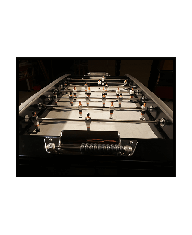 ¡El futbolín tal como lo conocías en los bares! Con su retorno central, su campo de juego plano en Gerflex con esquinas inclinadas, sus barras telescópicas, cojinetes auténticos, jugadores moldeados en fundición, su cuerpo en haya maciza, el futbolín Sulpie Evolution es un verdadero futbolín que representa el estilo de juego francés, tal como se encontraba en muchos bares desde los años 60 hasta los años 80. Gracias a este saber hacer artesanal y a la elección de materiales de calidad, el futbolín Sulpie es especialmente valorado tanto por los jugadores como por los amantes de la decoración, ya que ofrece una amplia gama de personalizaciones.